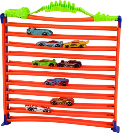 Tento šikovný set 2v1 kombinuje rýchlu závodnú akciu a praktické parkovanie. Postavte dráhu so slučkou 360° pre dynamické preteky a následne ju ľahko prestavajte na impozantnú garáž s 11 poschodiami na ukladanie celej zbierky autíčok. Vďaka jednoduchým spojom si deti dráhu poskladajú samy a zelené prvky po zložení vytvoria pevné madlo na ľahké prenášanie.