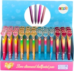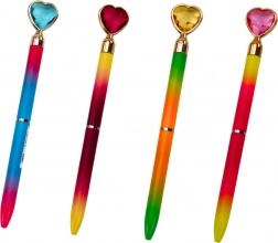 Guľôčkové pero s diamantovým srdcom, modrý atrament 0,7 mm – mix farieb