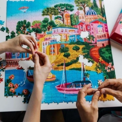 Puzzle TREFL Premium Plus z rady The Art of Colour (Umenie farieb) prinášajú jedinečný vizuálny zážitok s motívom malebného ostrova Syros v Grécku. Vysokokvalitný kartón a presná technológia výrezov zabezpečia, že dieliky do seba zapadnú iba tam, kam patria, a vďaka zvýšenej hrúbke môžete zložené časti ľahko presúvať bez rizika rozsypania.