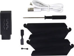 Súčasťou je USB kábel na nabíjanie, náhradné rotory, skrutkovač a návod – všetko, čo potrebujete na rýchly štart.