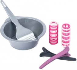 Miska, štetček, klipsy a natáčky podporia fantáziu pri „farbení“ a tvarovaní účesov. Bezpečne, bez neporiadku.