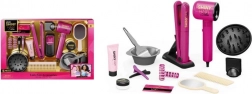 Fén na batérie, žehlička na vlasy, hrebeň, zrkadielko, natáčky, spinky/klipsy, miska a štetček na farbu, doplnky starostlivosti