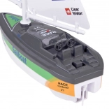 Bezpečnosť zabezpečuje funkcia automatického vypnutia motora pri naklonení na bok, ktorá pomáha predchádzať podliatiu hračky. Plachta je z kartónu – po kontakte s vodou ju jemne osušte, aby si zachovala tvar a životnosť.