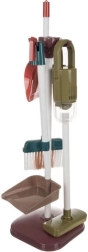 Stojan na pomôcky - Súčasťou sady je aj stabilný stojan na širokej základni, ktorý pojme kefu na umývanie riadu, metlu, lopatku na prach a veľkú metlu so stojacou lopatkou. Na stojan možno tiež zavesiť vysávač, vďaka čomu jednoducho uložíte všetko príslušenstvo na jednom mieste. Týmto spôsobom sa deti učia organizovať a udržiavať poriadok na svojom pracovisku. Všetky diely sú vyrobené z kvalitného a odolného PP materiálu, ktorý zaisťuje trvácnosť a bezpečnosť pri hre.