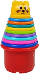 Táto dúhová farebná pyramída je ideálna hračka pre rozvoj motoriky a zručnosti dieťaťa. Skladá sa z pohárikov rôznych farieb s potlačami, pričom najmenší pohárik má potlač s mačičkou. Pyramída má hladký tvar, takže je pri hraní bezpečná.