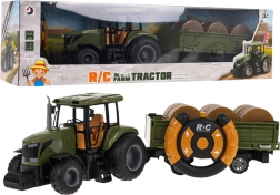 Zelený diaľkovo ovládaný traktor s prívesom