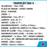 Yakovlev Yak-3 bol obľúbený stíhací lietadlo vďaka svojej jednoduchej údržbe a pevnej konštrukcii. Tento model, vyrobený zo 140 stavebnicových kociek COBI, ponúka vysokú kvalitu a starostlivé detaily, vrátane odnímateľného podvozka. Stíhačka má dĺžku 18,5 cm a rozpätie krídel 20 cm, čím sa skvele hodí do vašej rastúcej historickej kolekcie.