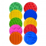 • Pestré textúry – Každý disk má unikátnu textúru, ktorá podporuje rozvoj dotykovej percepcie a vnímanie rozpoznávania rôznych povrchov.