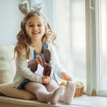 Priložená mrkvička spustí zvuk chrumkania a podporí interakciu dieťaťa so zvieratkom formou starostlivosti a hry.