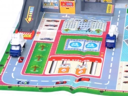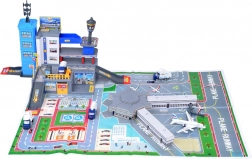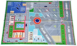 Farebná herná podložka s letiskovými štruktúrami poskytuje autentickú atmosféru pre malých pilotov a správcov leteckej prevádzky.
