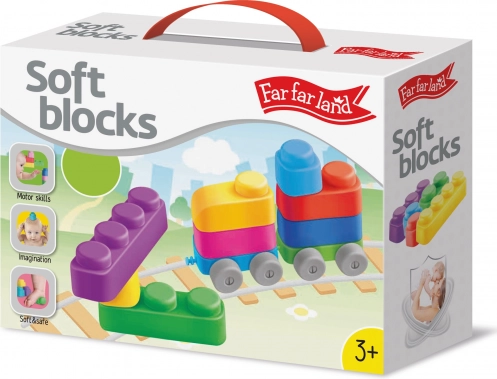 Far Far Land mäkké stavebnice pre malé deti ponúkajú bezpečnú a kreatívnu zábavu s desiatimi dielikmi a ôsmimi kolieskami. Táto stavebnica rozvíja kreativitu, motorické zručnosti a koordináciu ruka-oko. Vyrobené z mäkkého materiálu vhodného ako kúsadlo.
