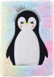 Farebný chlpatý obal s výšivkou tučniaka s korunkou a slúchadlami je mäkký na dotyk, chráni zápisník a zaručí, že vynikne kdekoľvek.