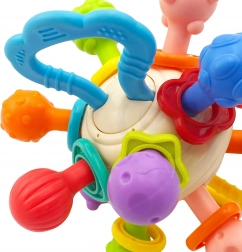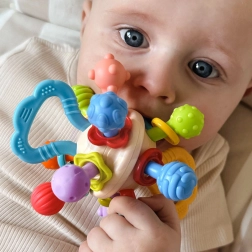 Kombinuje vlastnosti hryzadla a hrkálky, ponúka deťom rôzne spôsoby zábavy.