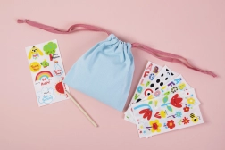 Sada je ideálna pre deti od 4 rokov, ktoré milujú tvorenie a dekorácie. Ľahučké textilné vrecko so sťahovaním možno ozdobiť pestrofarebnými písmenami, číslami a veselými motívmi kvetov či zvieratiek. Vďaka jednoduchému postupu si deti ľahko vytvoria originálne vrecko na drobnosti do škôlky, na krúžky alebo ako darčekové vrecúško.