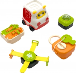 Súčasťou balenia je autíčko, ku ktorému možno pripájať prvky z panelu.