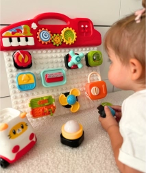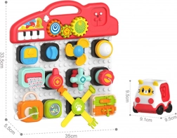 Panel sa skladá z rôznorodých interaktívnych prvkov, ktoré možno ľubovoľne pripájať a odpájať, podobne ako kocky. Súčasťou balenia je tiež autíčko v tvare kocky, ku ktorému možno pripájať prvky z tabuľe. Na pripájaných kockách sa nachádzajú rôzne typy prepínačov, gombíkov, tlačidiel, vyberateľné obrúsky, zámok s kľúčom a otvárateľné okienka. Tieto prvky rozvíjajú u dieťaťa motorické, poznávacie a senzorické zručnosti a tiež cvičia koordináciu ruka-oko.