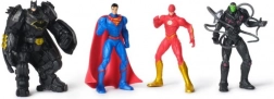 Brainiac, Batman, Superman a Flash v praktickej výške cca 5 cm s detailným spracovaním a metalickým efektom – pripravené na vystavenie aj hranie.