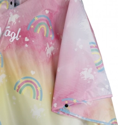 Užite si suché a pohodlné dobrodružstvá v daždi. Detské pršiplášťové pončo BAAGL v motíve jednorožcov zaujme hravými farbami a funkčnými detailmi. Kapucňa so šiltom chráni tvár pred kvapkami, zatiaľ čo nepremokavý, ľahký materiál sa príjemne nosí a ľahko sa zbalí.