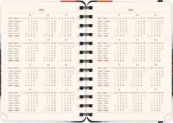 Diár Notique Petito v japonskom štýle zahŕňa osemnásťmesačný kalendár s rozsahom od júla 2025 do decembra 2026, čo zaisťuje dlhodobú prehľadnosť a plánovanie.