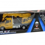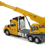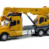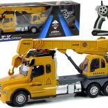 Diaľkovo ovládaný žltý nákladný auto s žeriavom a zvukmi