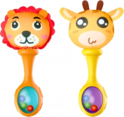 Súprava hrkálok je navrhnutá s ohľadom na potreby rastúceho dieťaťa. Má ergonomický tvar prispôsobený drobným ručičkám a mäkký textilný povrch, ktorý je príjemný na dotyk. Živé farby a motívy zvieratiek, ako sú lev a žirafa, hneď upútajú pozornosť dieťaťa a stimulujú jeho zmysly.