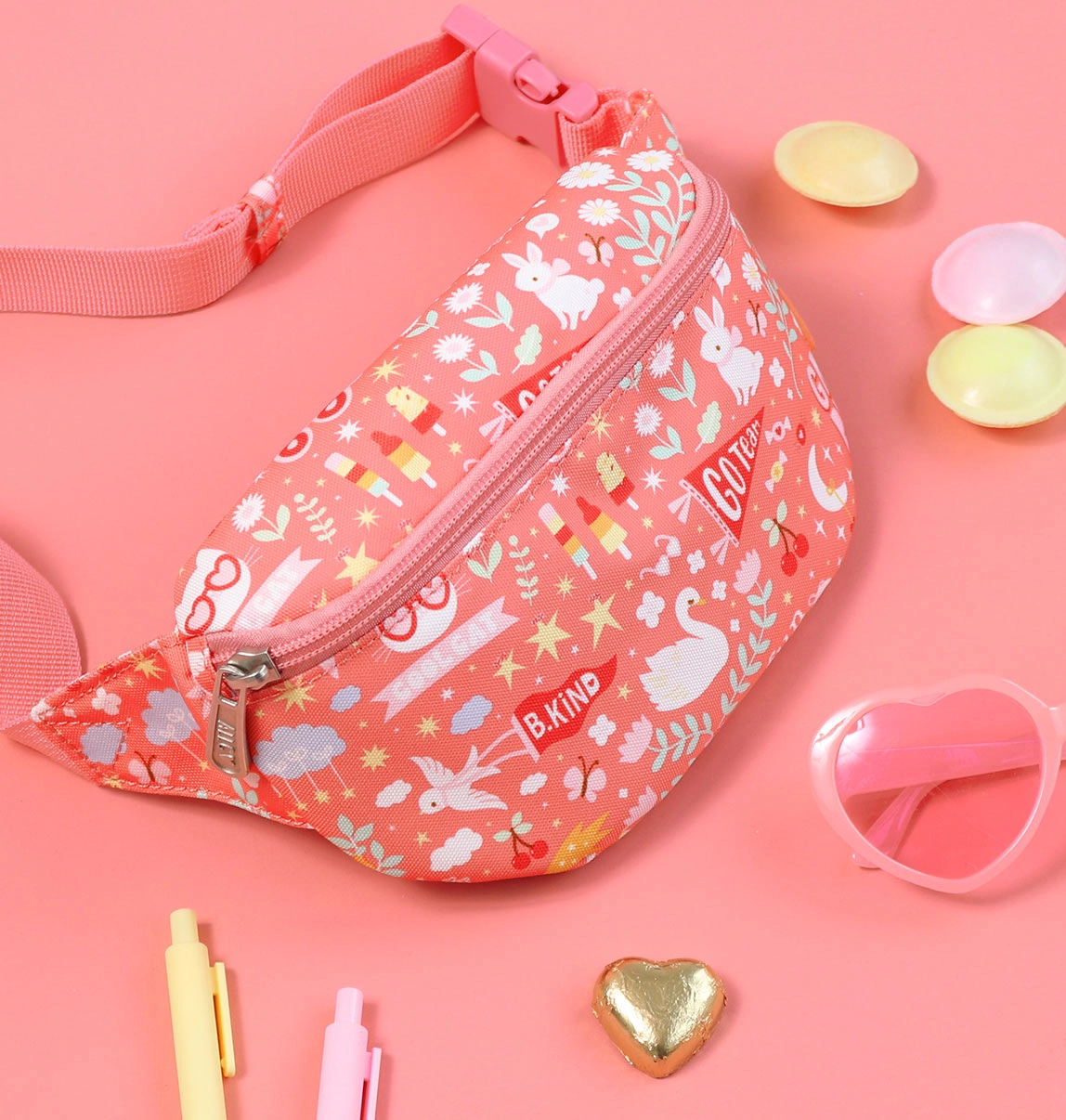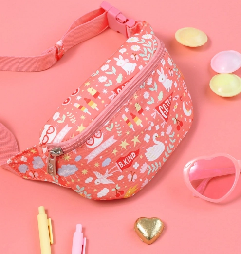 Detská ľadvinka od značky A Little Lovely Company prináša zábavný dizajn v ružovej farbe s nastaviteľným popruhom, ktorý je možné nosiť okolo pása alebo ako crossbody kabelku. Ideálna pre uloženie peňaženky a mobilného telefónu.
