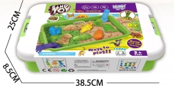 Súčasťou balenia sú rôzne zvieracie formičky, lopatky, hrable a modelovacie tyčinky, ktoré podporujú rozvoj predstavivosti, koordinácie oko–ruka a sústredenia. Vďaka uzatvárateľnému boxu je hra prenosná a uprataná – piesok aj doplnky jednoducho uložíte a vezmete kamkoľvek.