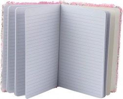Obal zápisníka je pokrytý pohyblivými, trblietavými flitrami, ktoré menia farbu z ružovej na bielu len prešuchnutím ruky. Pod touto fascinujúcou vrstvou nájdete magický motív jednorožca s kvetinovou ozdobou, ktorý uchváti každého milovníka magických bytostí.