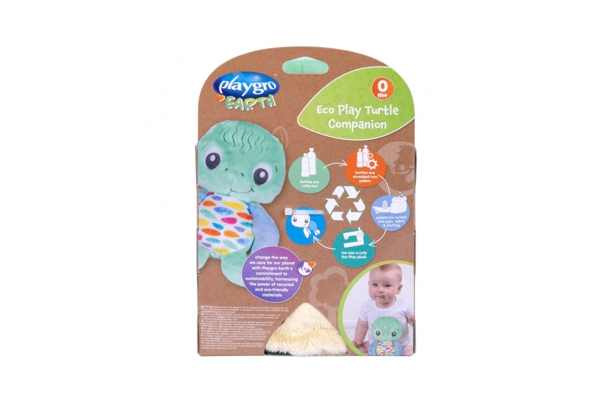 Roztomilá plyšová kamarátka korytnačka z radu Eco Play od značky Playgro poteší každé bábätko od 3 mesiacov. Je vyrobená z recyklovaných PET fliaš, takže je nielen hebká a bezpečná, ale aj šetrná k životnému prostrediu. Vďaka extra mäkkému materiálu, pestrofarebným vzorom a priateľskému dizajnu podporuje vizuálne vnímanie, rozvoj zmyslov a poskytuje pocit pokoj a bezpečia pri túlení aj spánku.