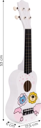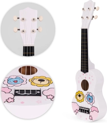 Detské ukulele ECOTOYS je skvelou voľbou pre malých hudobníkov od 3 rokov. Vďaka možnosti ladenia a realistickému spracovaniu sa deti ľahko naučia základné akordy a melódie. Drevené telo v kombinácii s nylonovými strunami poskytuje príjemný, mäkký tón a pohodlné hranie od prvých pokusov. Veselá potlač prinesie radosť každému domácemu koncertu aj škôlkarskemu vystúpeniu.