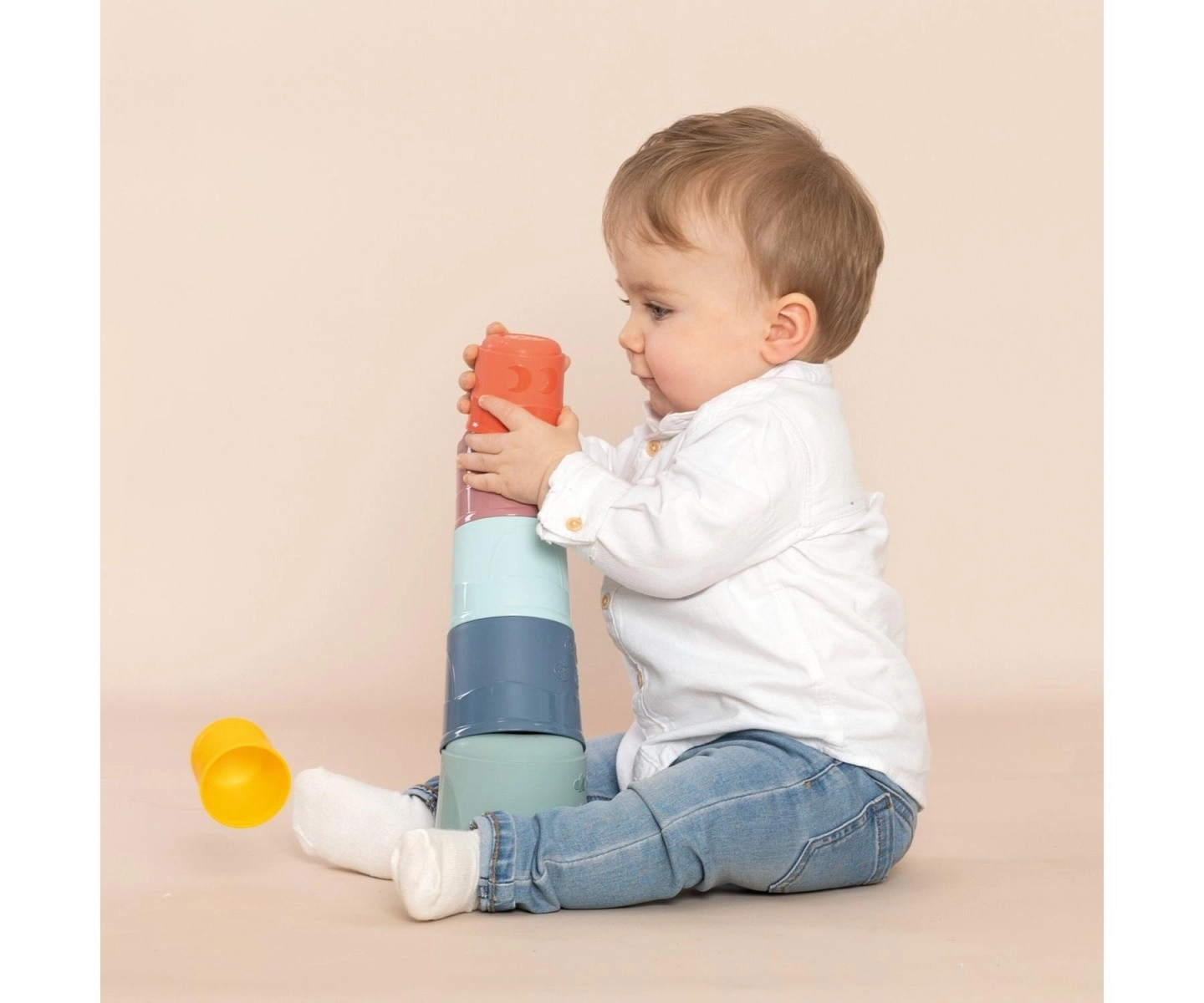 Hranie s kelímkami podporuje kľúčové zručnosti raného vývoja. Deti si trénujú presné úchopy, koordináciu a trpezlivosť, zároveň sa učia rozlišovať veľkosti a poradie. Jednoduché, bezpečné a stále znova objaviteľne zábavné.