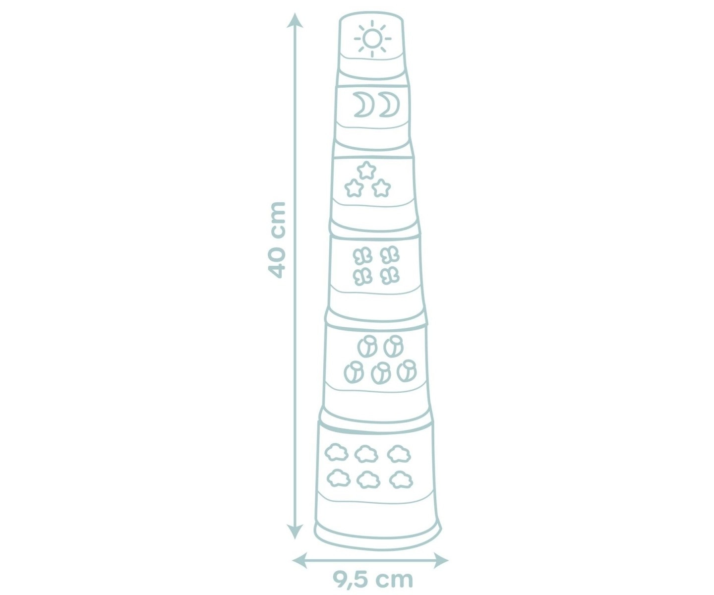 Farebná stohovacia veža LITTLE SMOBY ponúka deťom hodiny objavovania a zábavy. 6 rôznofarebných kelímkov možno vkladať do seba alebo stavať na seba a vo vani pozorovať prietok vody otvormi. Hra prirodzene rozvíja jemnú motoriku, koordináciu ruka–oko, rozpoznávanie tvarov a farieb aj logické myslenie.