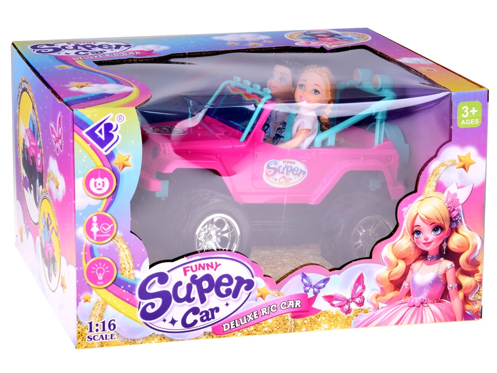 Ružové RC terénne auto pre bábiky s 2 figúrkami