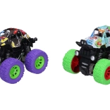 Tieto terénne autíčka s veľkosťou cca 9 cm so frikčným pohonom (zotrvačník) stačí natiahnuť a pustiť – vyrazia vpred vysokou rýchlosťou. Štýlové karosérie s graffiti motívmi v rôznych farebných variantoch priťahujú pozornosť a podporujú kreatívnu hru.