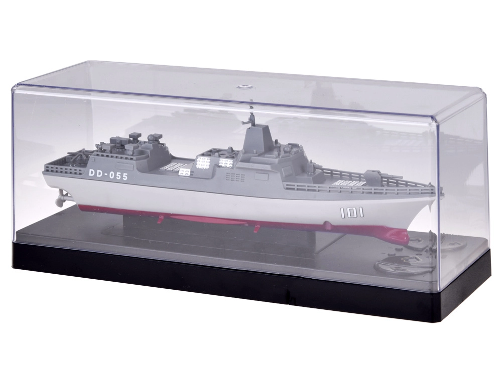 Objavte silu oceánov s modelom RC torpédoborca DD-055. Loď v šedo-červenej farebnej kombinácii verne napodobňuje moderný raketový torpédoborec a zaujme bohatými detailmi – od palubných prvkov až po pristávaciu plochu pre vrtuľník. Vďaka kompaktnej veľkosti sa skvele ovláda a zároveň vynikne na poličke v mini vitrínke, ktorá je súčasťou balenia.