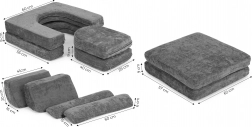 Táto veľká modulárna pohovka ECOTOYS prináša dokonale vyváženú kombináciu komfortu, zábavy a praktickosti. Desať rôzne tvarovaných vankúšov umožňuje stavať sofy, ležadlá aj herné hrady, takže deti môžu oddychovať aj tvoriť. Mäkká, no odolná pena poskytuje oporu a bezpečie pri hraní, zatiaľ čo žinylkový poťah je príjemný na dotyk a odolá každodennému používaniu.