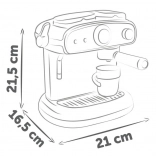 Praktická sada zahŕňa 2 hrnčeky, 2 lyžičky a 2 kapsuly na kávu, takže deti môžu obslúžiť aj kamarátov či súrodencov. Kompaktné rozmery 16,5 × 21 × 21,5 cm zaručujú, že sa kávovar zmestí na každý detský kuchynský pultík.