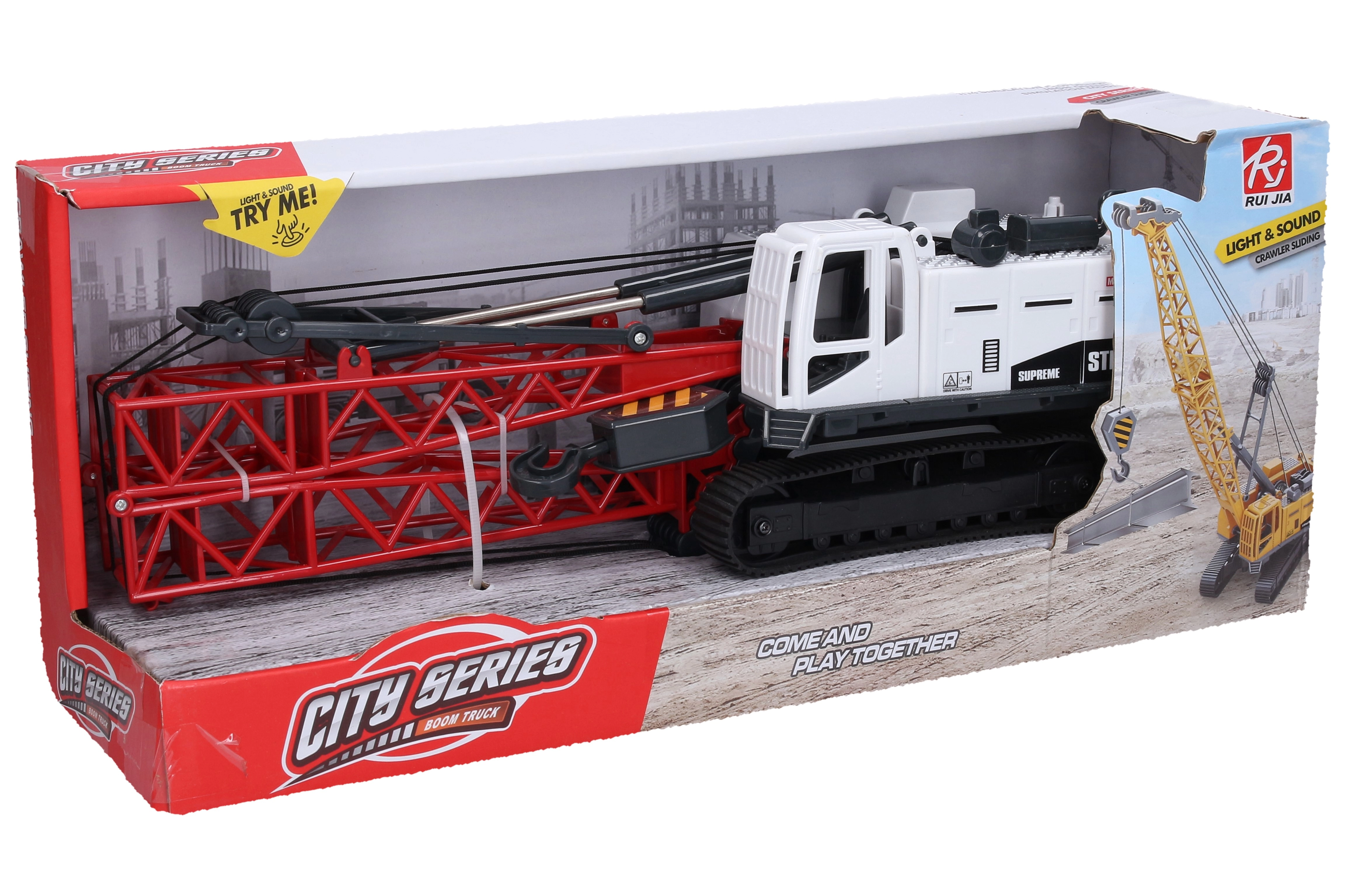 Tento pásový žeriav ponúka deťom realistickú stavebnú zábavu s jednoduchým ovládaním. Robustná konštrukcia, výrazné detaily a efektívny pohyb po pásoch podporujú fantáziu aj jemnú motoriku. Svetelné a zvukové efekty ešte umocnia autentický zážitok zo stavby.