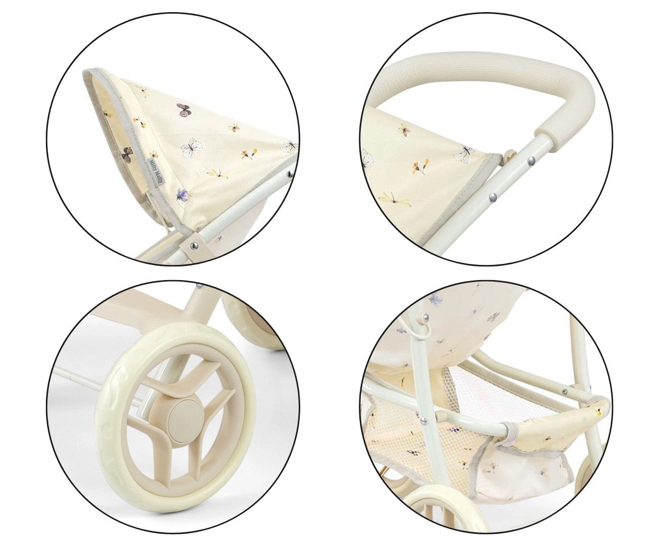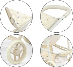 Štýlový kočík pre bábiky MILLY MALLY Natalie Nature ponúka realistický vzhľad a funkcie ako skutočný detský kočík. Má ľahkú kovovú konštrukciu, skladaciu striešku, bezpečnostné pásy a spodnú sieťku na doplnky. Vďaka penovej rukoväti a tichým kolieskam je ideálny na pohodlné hranie doma aj vonku.