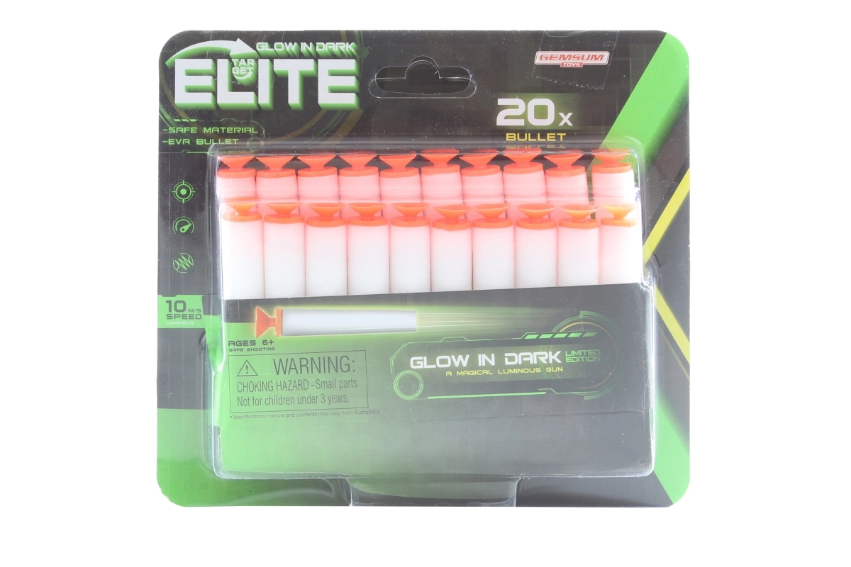 Rozšírte zásobu streliva pre detské pištole s touto sadou svietiacich penových nábojov s prísavkou. Náboje sú ľahké, bezpečné a vďaka svietiacemu efektu ich v tme ľahko uvidíte, čo zvyšuje zábavu aj prehľadnosť hry.