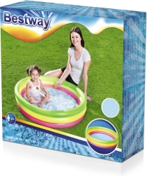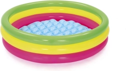Ľahký a skladný bazénik s priemerom 102 cm a výškou 25 cm je skvelou voľbou pre deti od 2 rokov. Tri farebné prstence s oddelenými ventilmi zabezpečujú stabilitu a bezpečie pri hraní, zatiaľ čo nafukovacie dno poskytuje extra komfort aj na tvrdších povrchoch. Kapacita 62 litrov je akurát na príjemné ochladenie a prvé vodné hry.