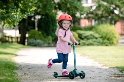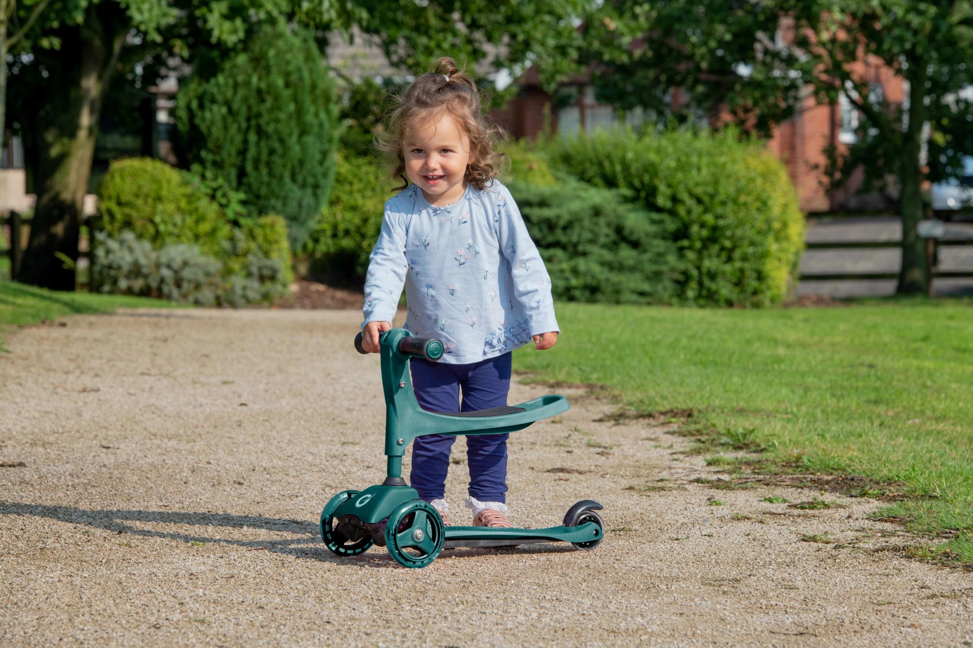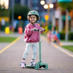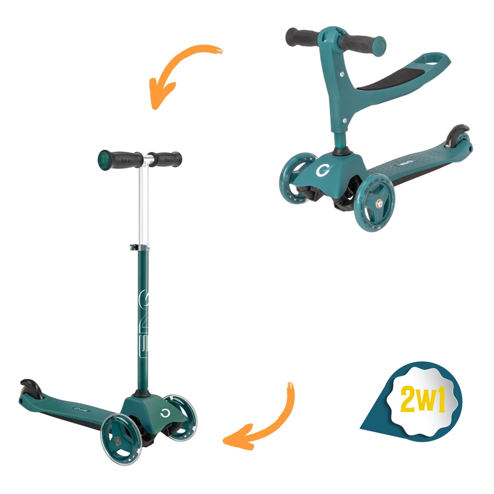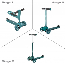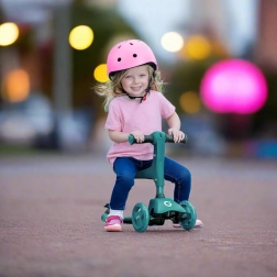 Táto šikovná trojkolová kolobežka 2v1 sa behom chvíľky premení z odrážadla so sedadlom na klasickú kolobežku. Vďaka regulovateľným riadidlám (cca 40 cm v režime odrážadla a 62–72 cm v režime kolobežky) rastie s dieťaťom a poskytuje istotu pri prvých jazdách aj neskôr pri svižnejšom odrážaní.
