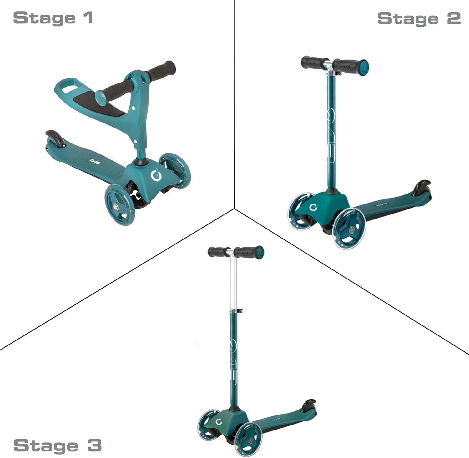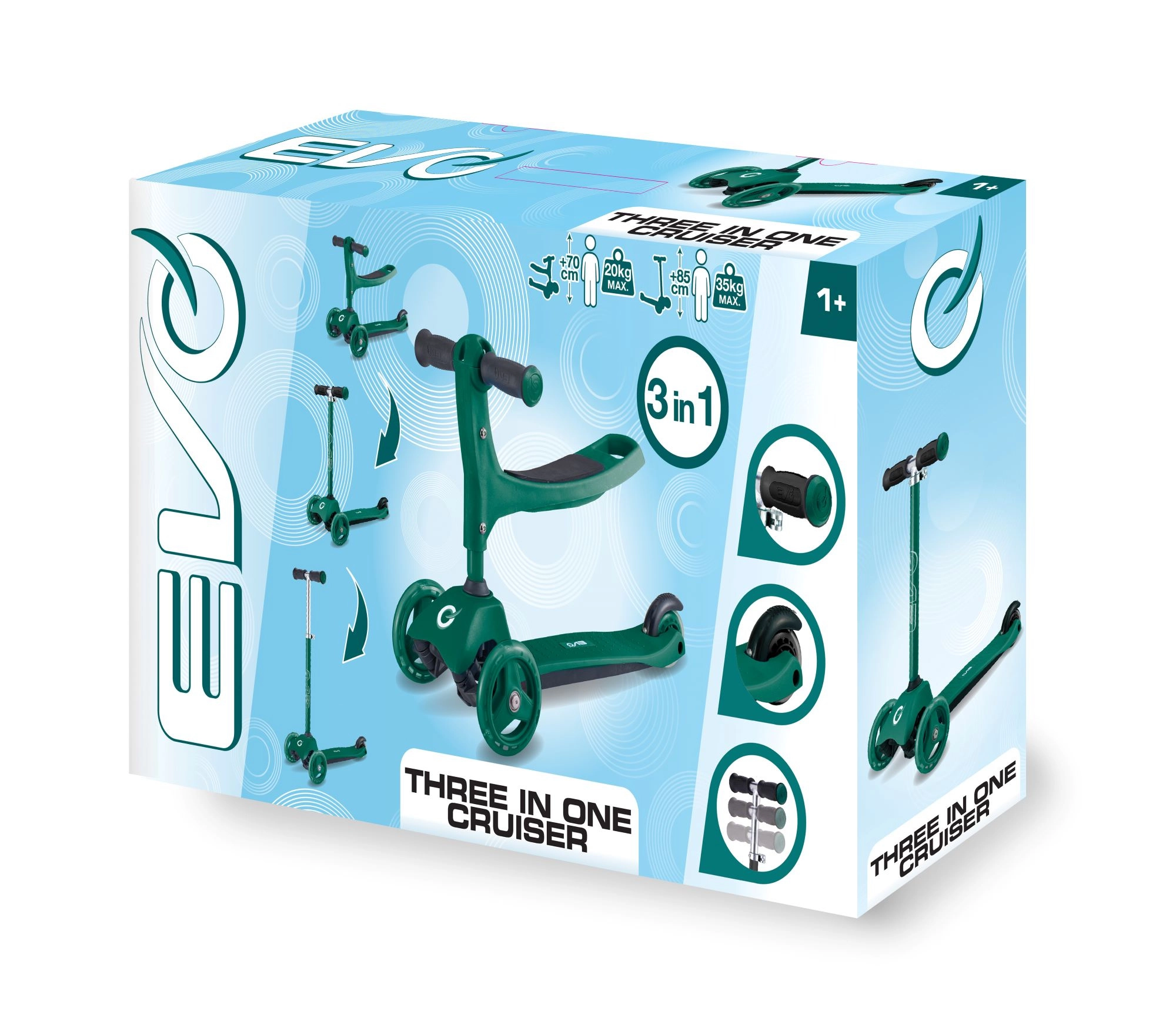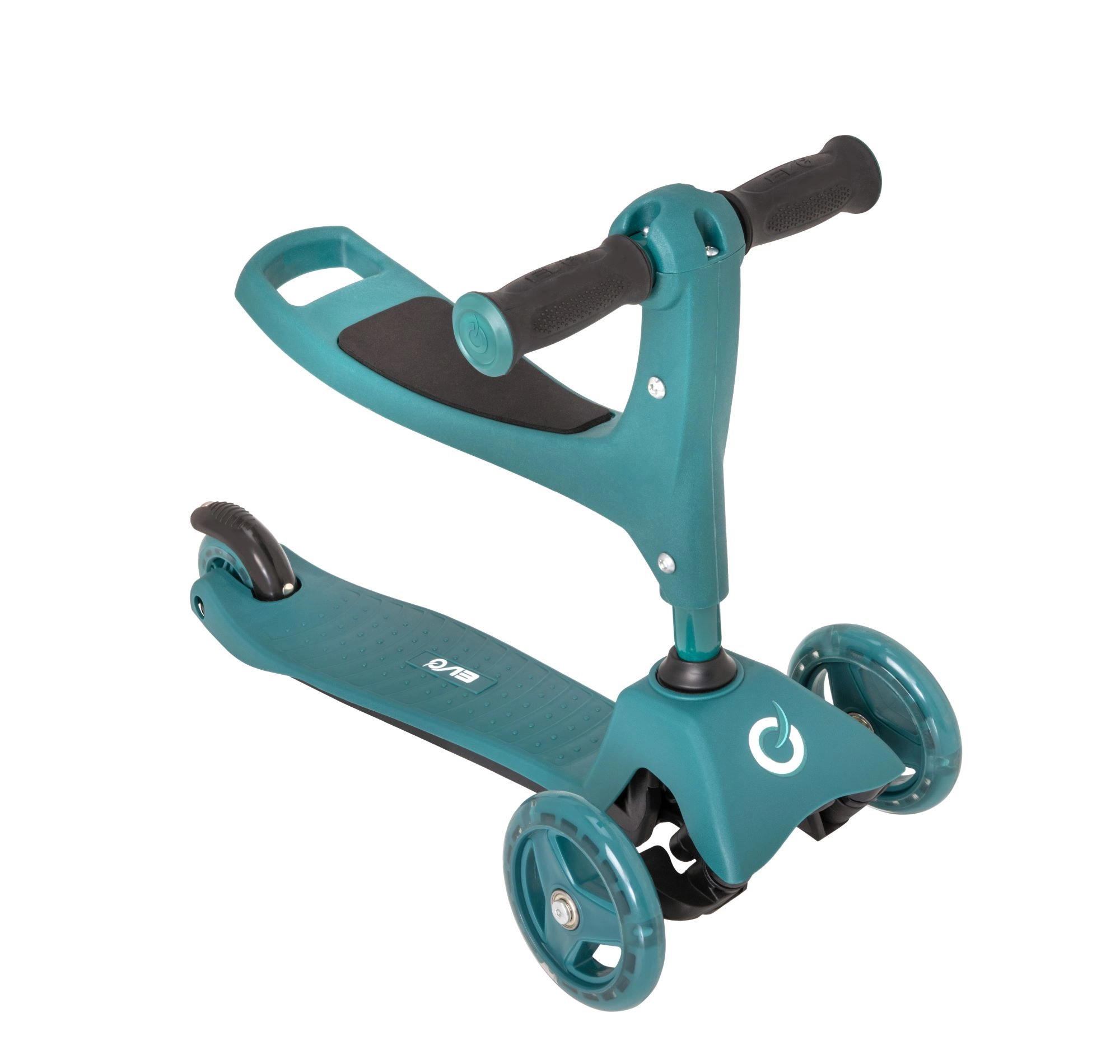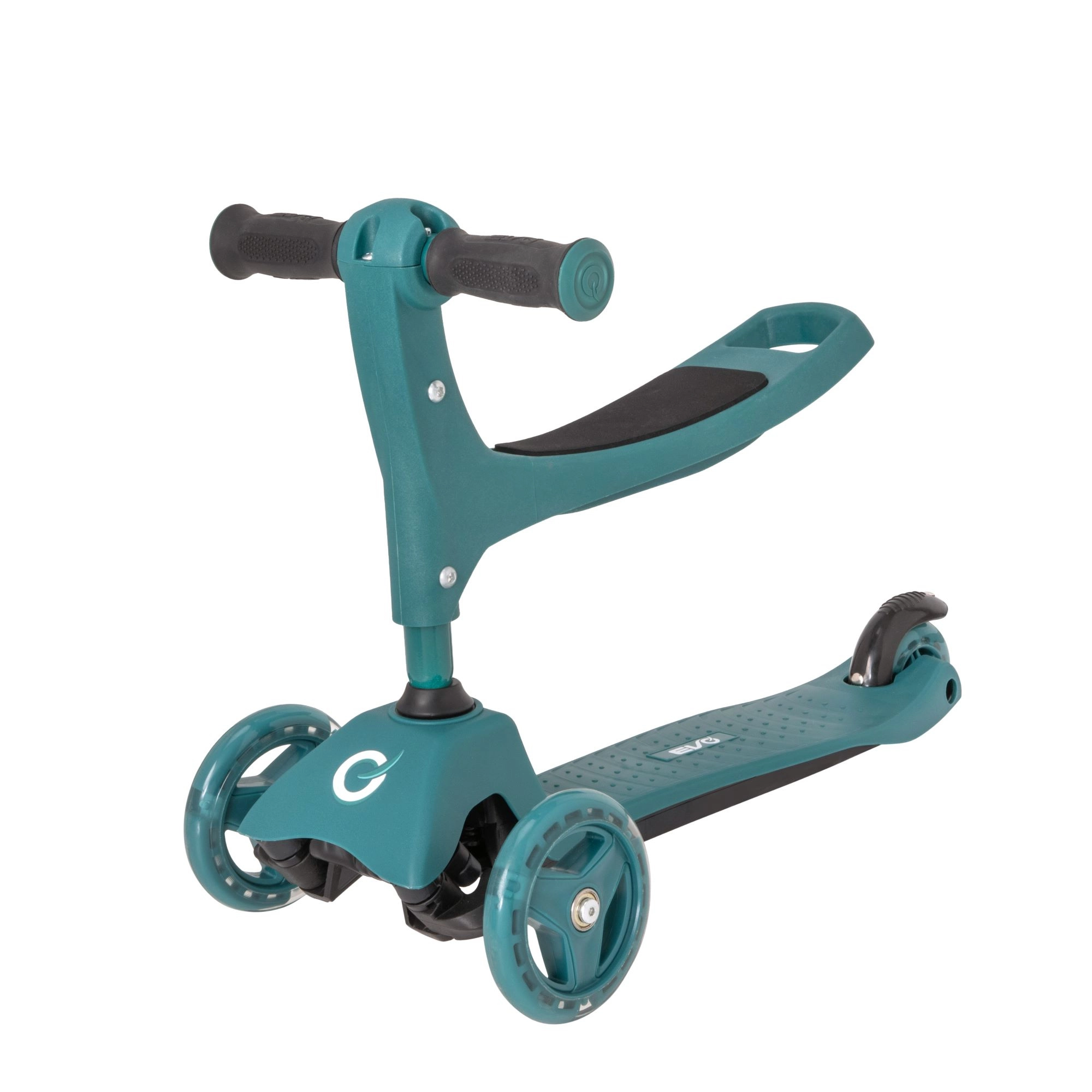 Evo detská trojkolová kolobežka 2v1 so sedadlom, nastaviteľná, tmavozelená
