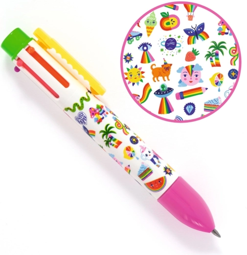 Šesťfarebné pero Djeco Sarah prináša praktické riešenie na každodenné písanie aj kreatívne tvorenie. Stačí kliknúť a vybrať si požadovanú farbu – bez hľadania ďalších pier. Ľahké telo pera a pohodlné držanie zabezpečujú plynulé písanie doma, v škole aj na cestách.