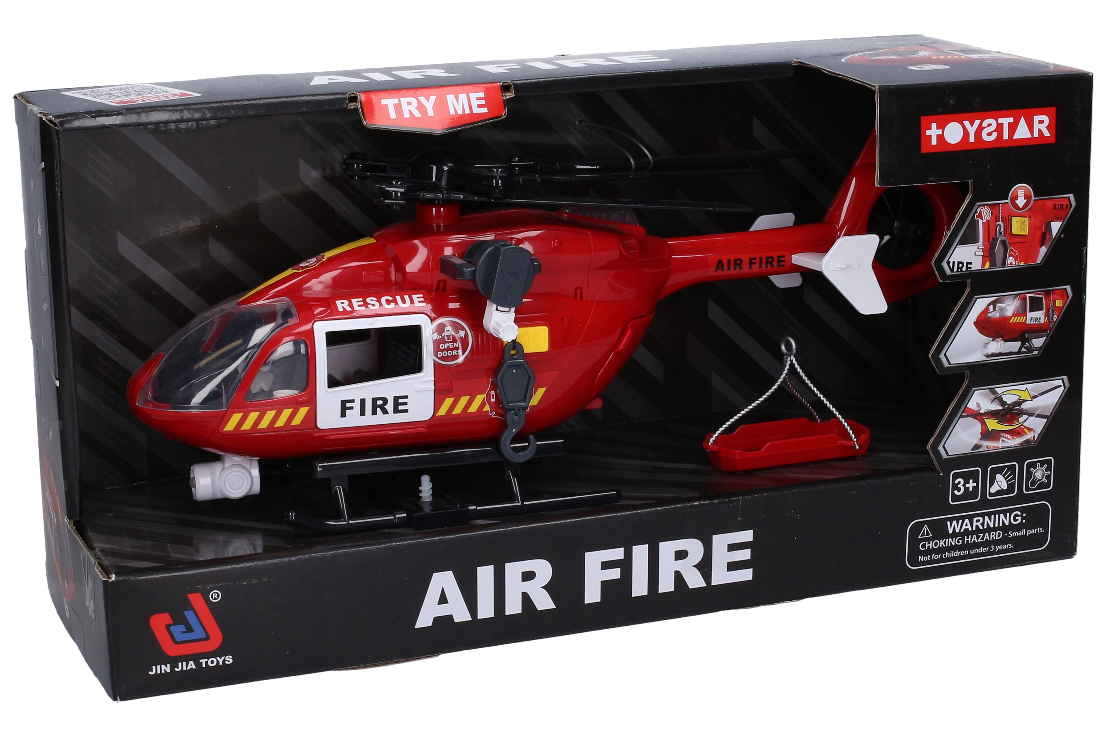 Realistický hasičský vrtuľník s dĺžkou 38 cm sa postará o hodiny akčnej zábavy. Ponúka svetelné a zvukové efekty, otváracie predné aj zadné dvere, výsuvné lano s hákom a ležadlo na záchranu. Batérie 2× AAA sú súčasťou a všetko sa ľahko ovláda tlačidlom na boku vrtuľníka.