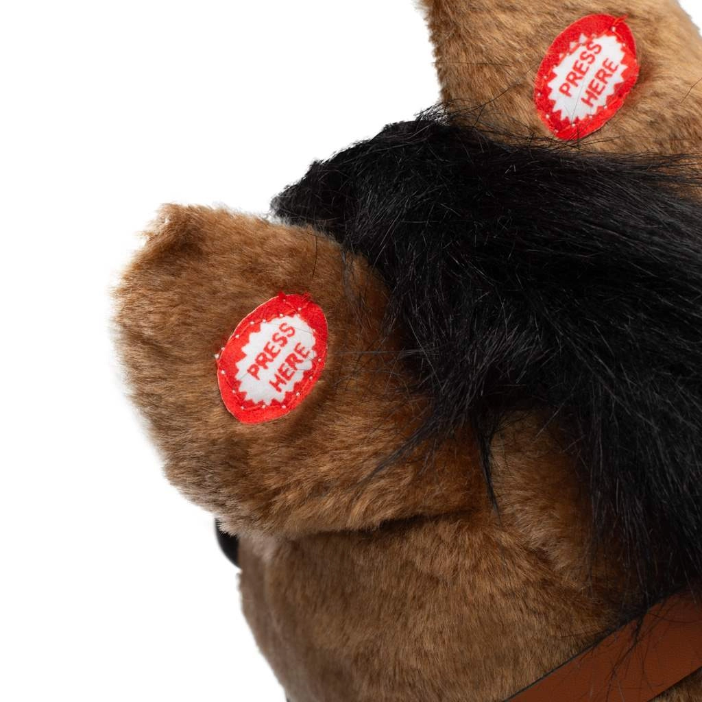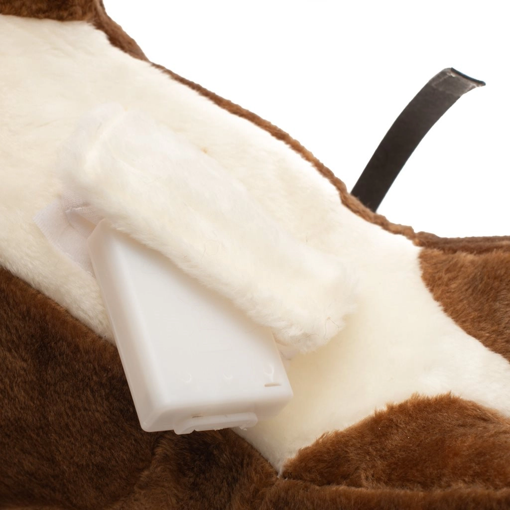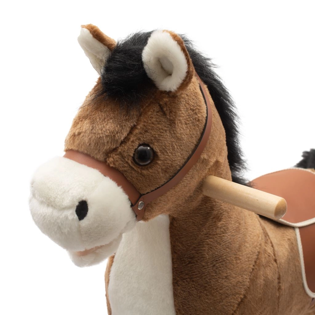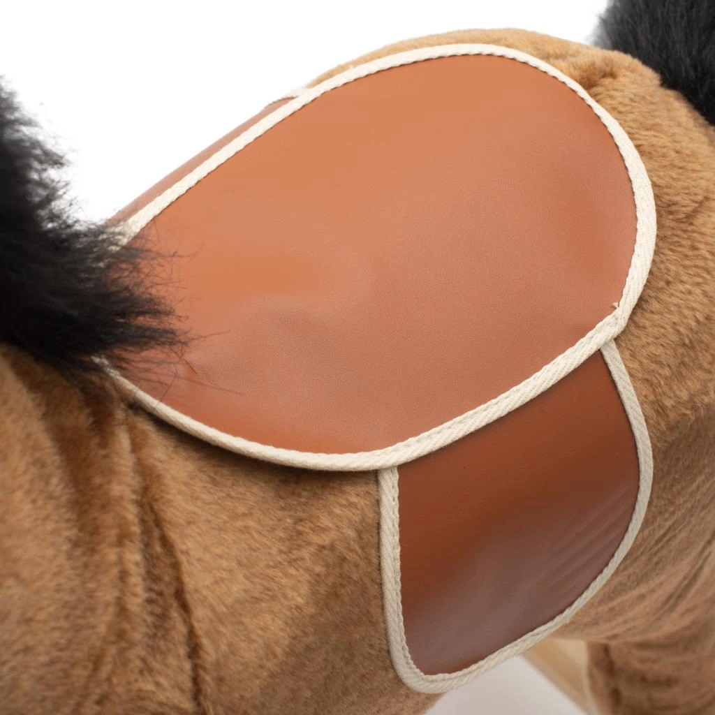 Vďaka stabilnej konštrukcii a možnosti demontáže hojdacích líšt je koník praktický na domáce používanie aj uloženie. Batériový modul je šikovne ukrytý vo vrecku na brušku. Hračka podporuje rozvoj motoriky, rovnováhy a fantázie.