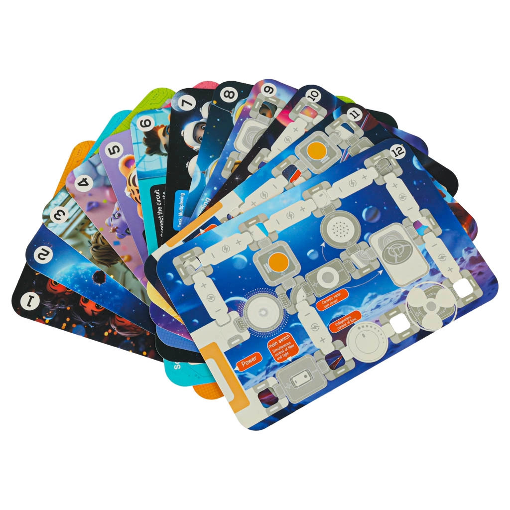 Farebné karty s diagramami a úlohami vedú deti krok za krokom od jednoduchých projektov po zložitejšie zapojenia. Skvelé na domáce učenie aj školské krúžky.