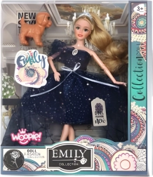 Objavte kúzlo módy a fantázie s bábikou Emi od WOOPIE. Krásna bábika s korunkou a dlhými blond vlasmi je oblečená do trblietavých spoločenských šiat s mašľou a tylovým lemom. V balení nájdete aj roztomilého psíka – verného parťáka na každodenné hranie. Vďaka dôrazu na detaily a modernému dizajnu je hra pútavá a realistická.