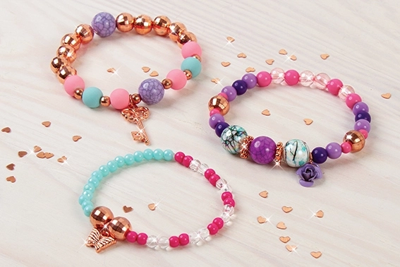 Vďaka 90 korálkam, 3 príveskom a pružnej gumičke ľahko navrhneš jedinečné náramky na každú príležitosť.