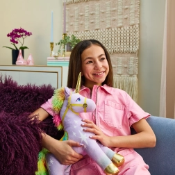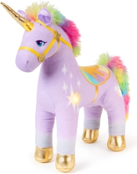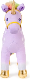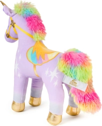 Mäkučký lila materiál, dúhová hriva a chvost a zlaté akcenty zaisťujú prémiový vzhľad aj príjemný dotyk pri túlení.